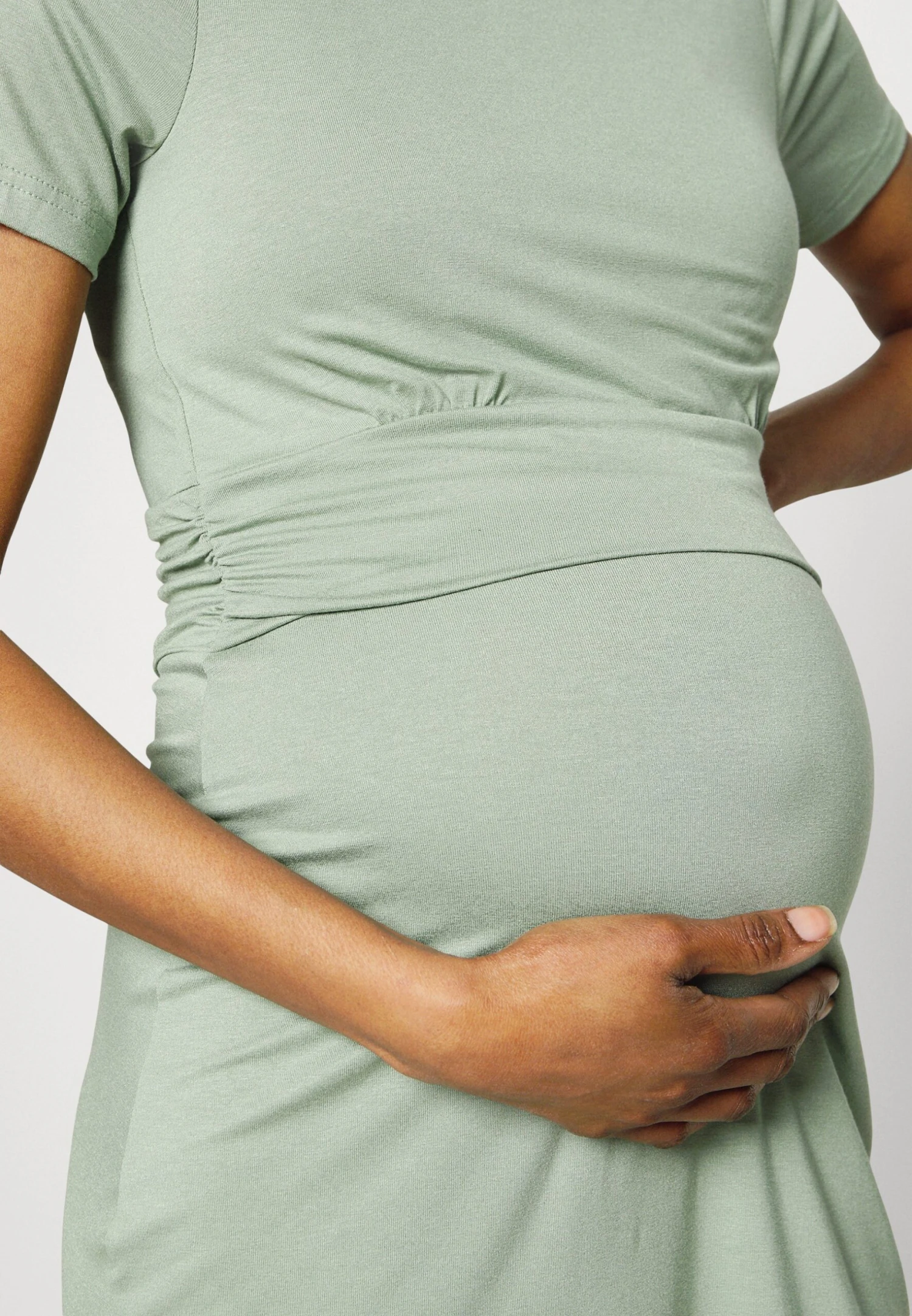 Short Sleeves Ruched Waist Mini Flared Dress – Vestido Ligero – Light Green